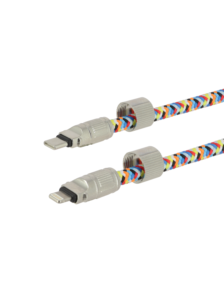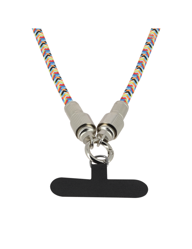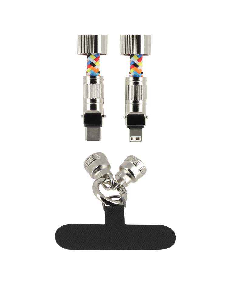 Emportez votre smartphone partout avec style grâce à notre bandoulière Multi Couleur avec cordon USB-C / Lightning intégré. Élégante et pratique, elle permet de recharger votre téléphone à tout moment sans câble supplémentaire.
