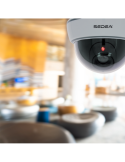 Optez pour la caméra factice dôme blanche et dissuadez efficacement les intrus ! Avec sa LED rouge clignotante, son design réaliste et sa fixation murale facile, elle imite parfaitement une vraie caméra de surveillance.