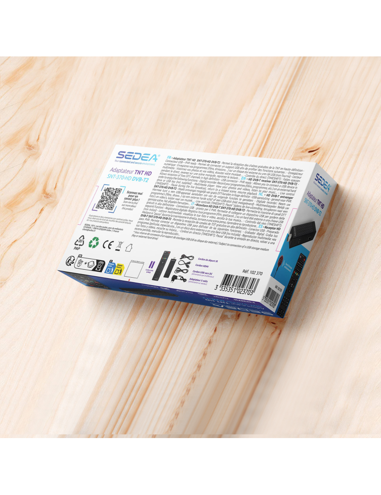 Profitez de toutes les chaînes gratuites de la TNT HD avec l?adaptateur TNT HD SNT-370-HD DVB-T2. Compatible avec les normes DVB-T2 H265/HEVC 10 bits, avec sortie HDMI, enregistrement USB, lecteur multimédia, contrôle du direct, télécommande universelle et déport infrarouge.