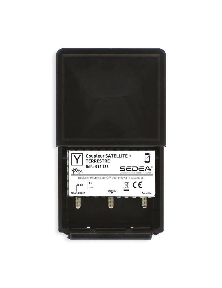 Ce Coupleur extérieur pour antennes TV et Satellite a 2 entrées et 1 sortie permet de coupler les signaux d?une antenne terrestre (TNT) et d?une parabole (Satellite). Son boîtier plastique étanche avec système de maintien des câbles coaxiaux permet de le fixer sur le mât de vos antennes.