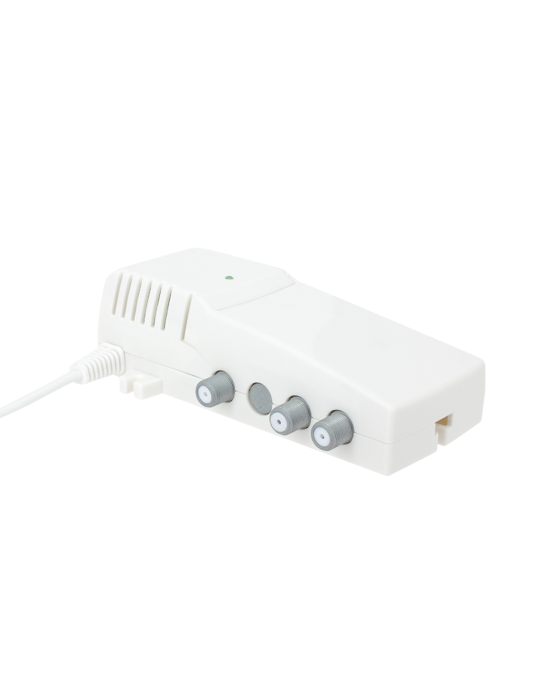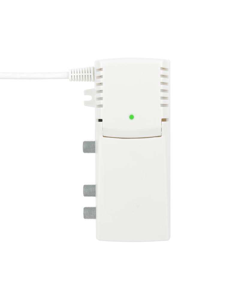 Cet amplificateur intérieur 1 entrée/2 sorties 21 dB permet d'améliorer la qualité du signal TNT de votre antenne terrestre et d'éviter tout phénomène de mosaïque ou de coupure d'image sur votre téléviseur. L'entrée de l'amplificateur sera reliée au câble coaxial provenant de votre antenne (ou de votre prise murale).