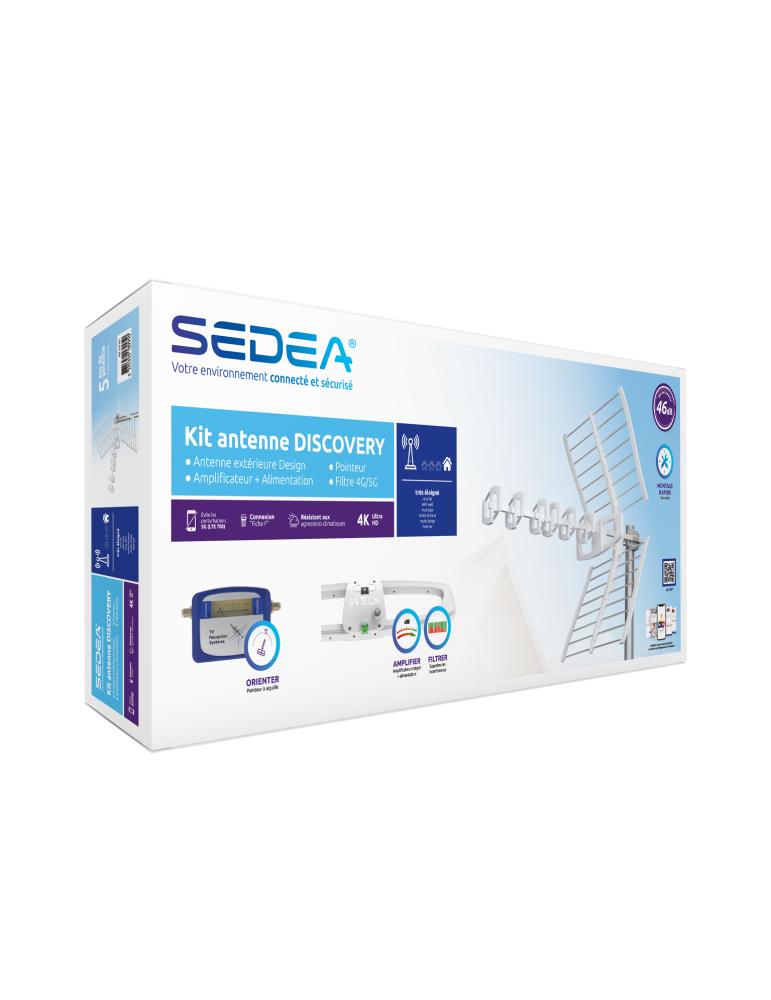 La Discovery est une antenne extérieure amplifiée Design, avec pointeur, Amplificateur, Alimentation et filtre 4G/5G. L'antenne extérieure se connecte via une Fiche type F, elle résiste aux agessions climatiques et est compaticle avec la réception 4K ultra HD.