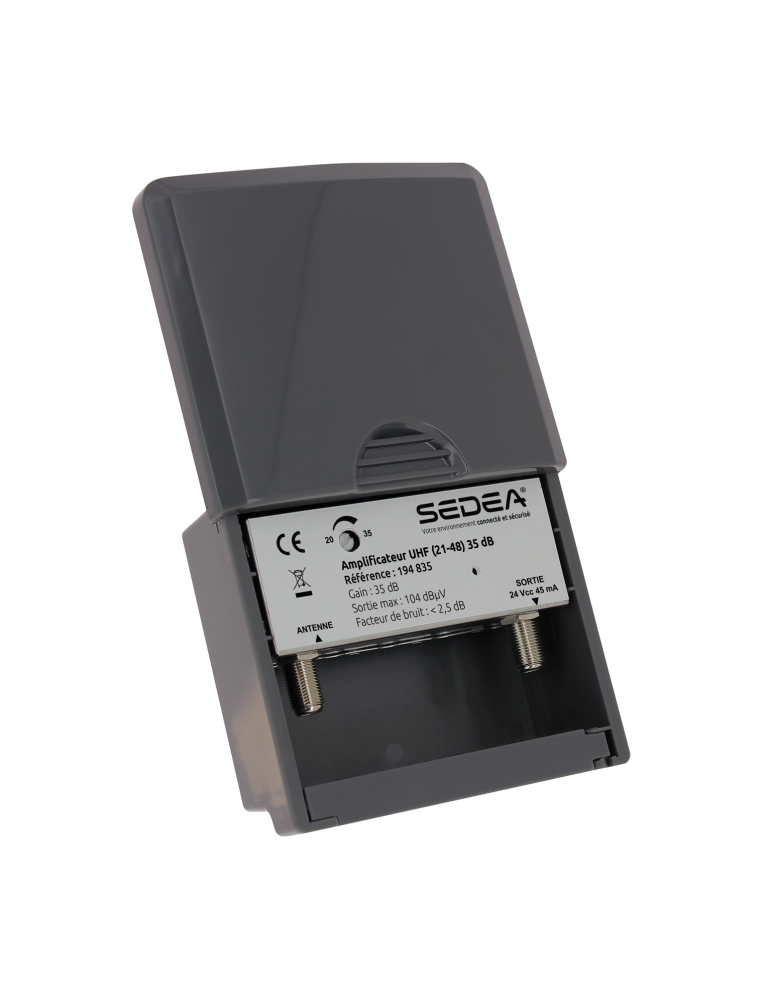 Kit Amplificateur UHF | canaux 21-48 / 35 dB + alimentation 2 Sorties