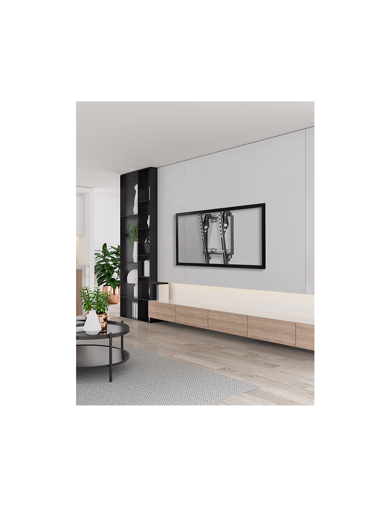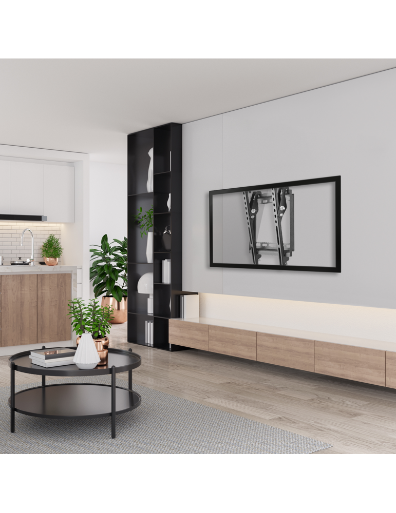 Notre support TV inclinable pour écrans de 58 à 106 cm, compatible VESA 50×50 à 200×200. Installation facile et robustesse inégalée grâce à sa mécanique de haute qualité et son système de verrouillage sécurisé. Inclinaison ajustable de 0 à -8° pour un confort visuel optimal.