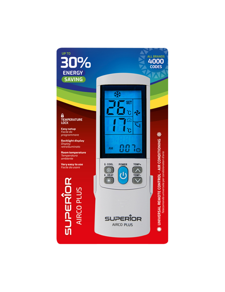Optez pour la télécommande universelle pour climatiseurs, élégante et performante ! Avec son grand écran LCD rétro-éclairé, elle affiche la température ambiante et souhaitée. Compatible avec 4000 codes !